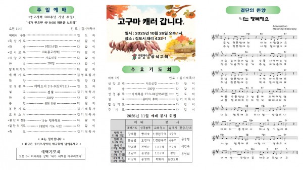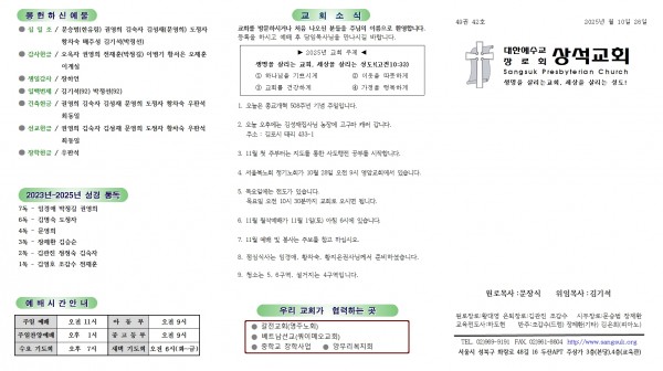 상석교회 2025년 10월 26일 교회소식 및 주보