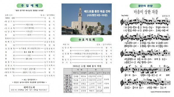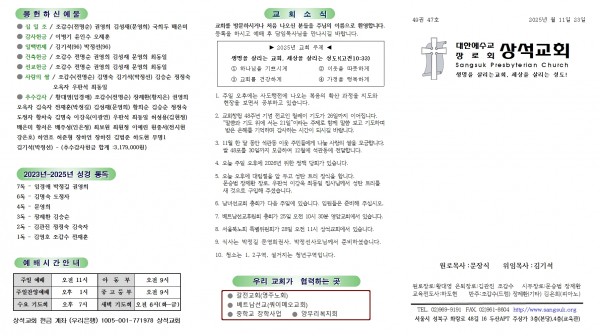 상석교회 2025년 11월 23일 교회소식 및 주보