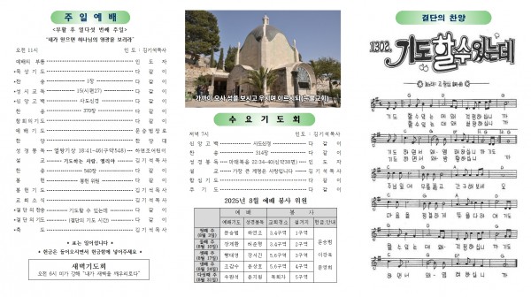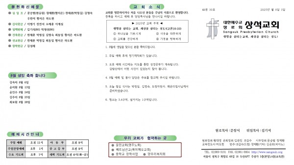 상석교회 2025년 8월 3일 교회소식 및 주보
