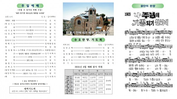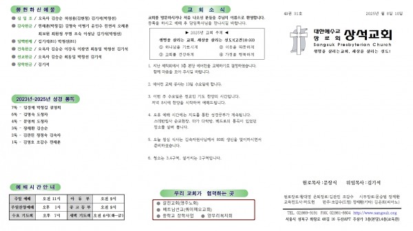 상석교회 2025년 8월 10일 교회 소식 및 주보