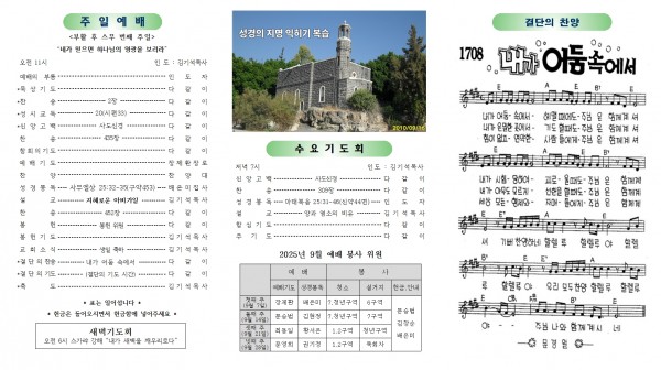 상석교회 2025년 9월 7일 교회소식 및 주보