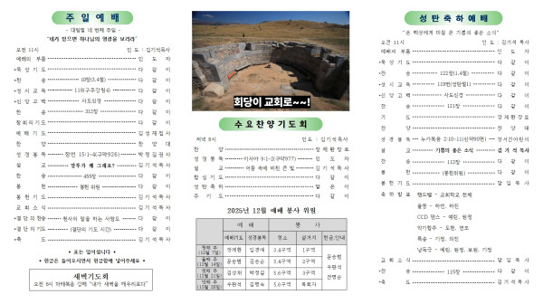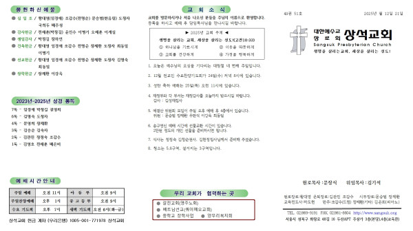상석교회 2025년 12월 21일 교회 소식 및 주보