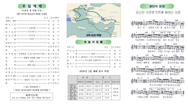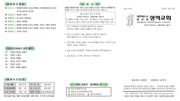 상석교회 2026년 1월 18일 교회소식 및 주보