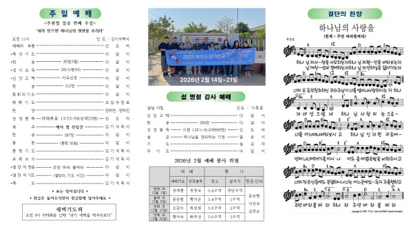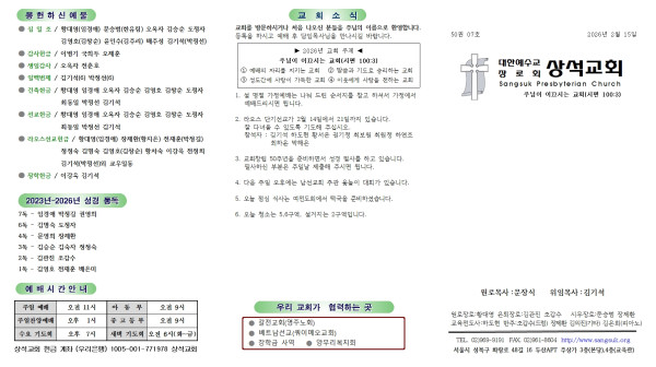 상석교회 2026년 2월 15일 교회 소식 및 주보