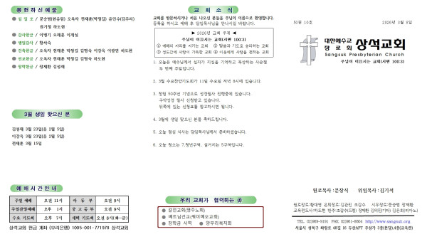 상석교회 2026년 3월 8일 교회소식 및 주보